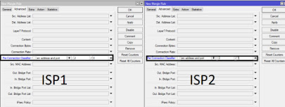 Lalu Untuk Router ISP1, Gunakan PCC:src address dan port 2/0 untuk ISP1 Dan 2/1 Untuk ISP2.